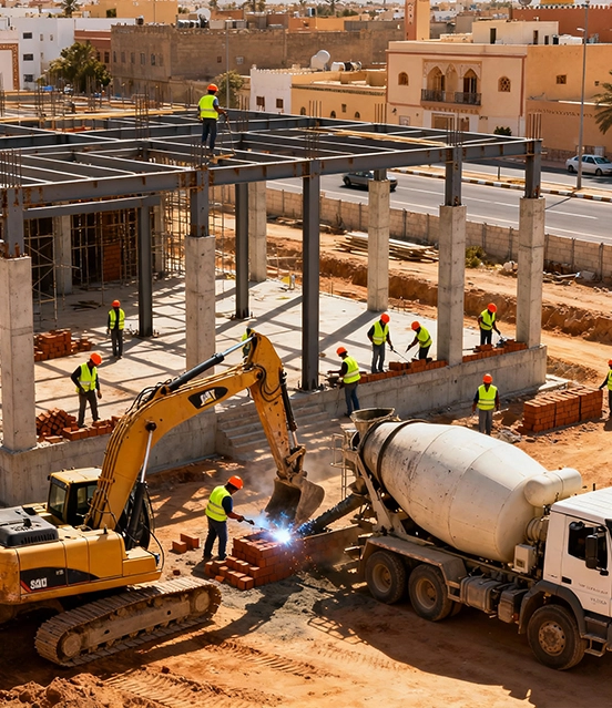 Chez Next Generation Building Morocco, nous sommes qualifiés dans tous les corps de métier du BTP et capables de gérer votre projet de A à Z, du terrain nu jusqu’au meublement final. Grâce à un réseau d’architectes certifiés, de bureaux d’ingénierie de premier plan, d’urbanistes agréés et d’entreprises de construction reconnues, nous coordonnons chaque étape avec des professionnels parmi les meilleurs au Maroc. Notre approche clé en main vous garantit des résultats durables, une exécution maîtrisée et une expérience fluide, qu’il s’agisse de projets résidentiels, industriels ou publics.